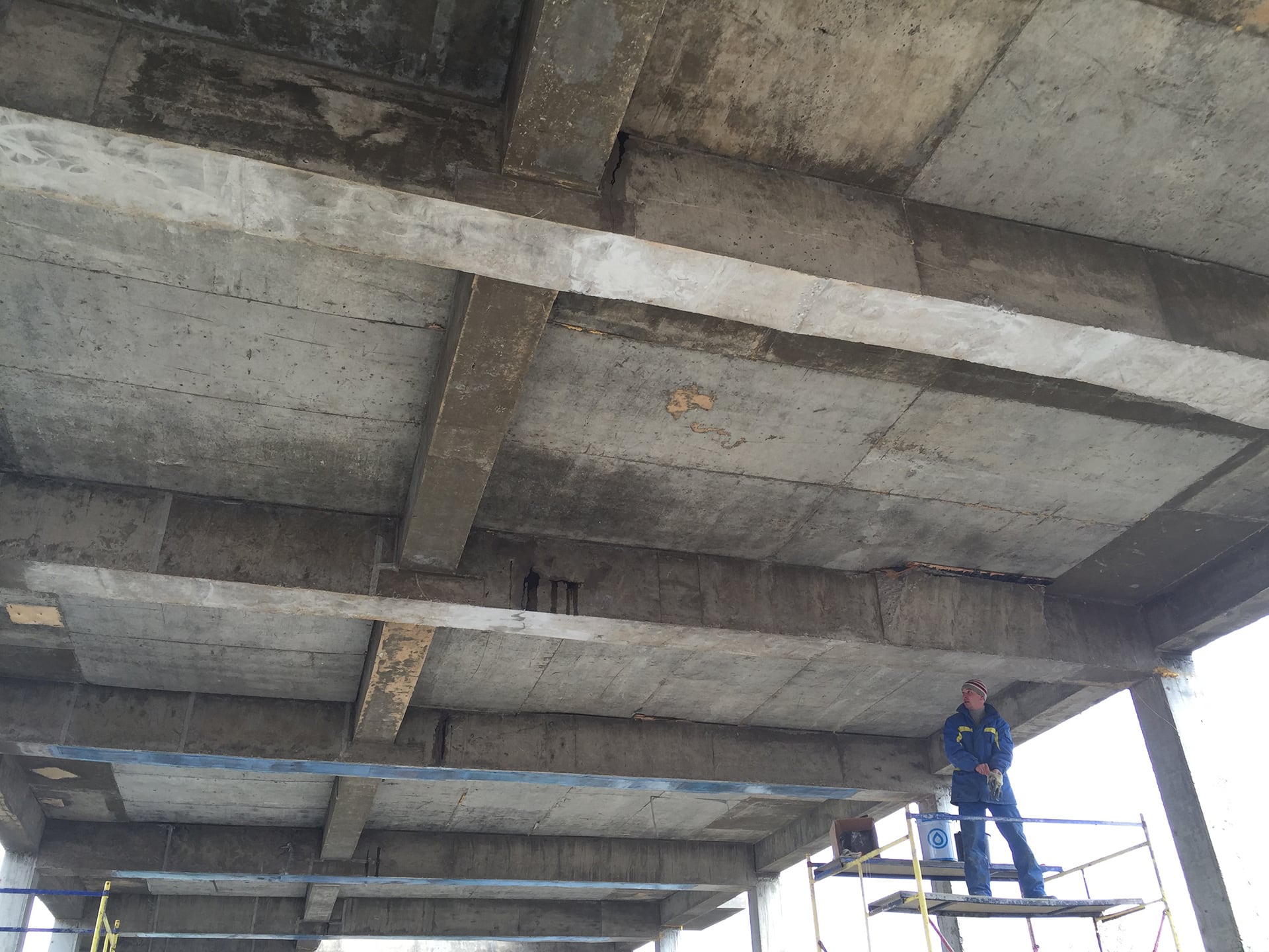 Нашими специалистами были произведены следующие работы. Проведено обследование перекрытий и выявлены критические дефекты, которые потребовалось усилить. Для того чтобы исключить вероятность разрушения здания, был выбран инновационный способ усиления перекрытий композитными материалами.