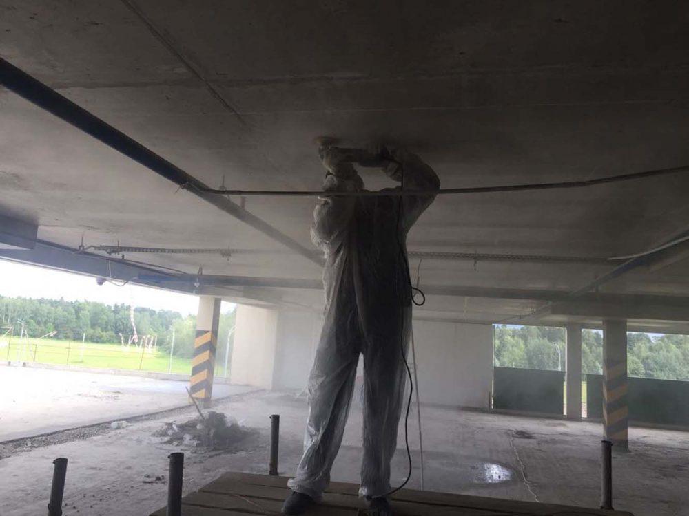 Чтобы осуществить усиление углеволокном бетонных конструкций, необходимо осуществить ряд этапов. Первый из них связан с подготовительными работами. Для этого участок, на который будет осуществлено воздействие, очищается от отслаивающихся фрагментов и наносится новый контактный слой. После высыхания поверхность выравнивается для наилучшего процесса укладки.