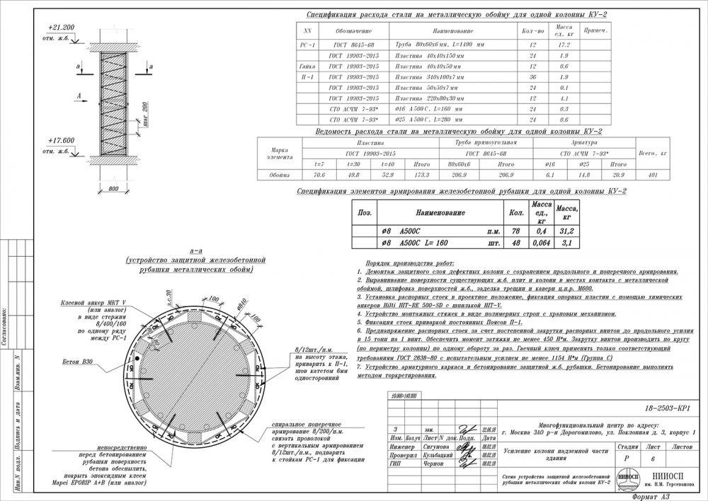 | Колонны | Создание стальных обойм, применение композитных материалов | от 5-7 дней от 100 м2 | от 2 650 руб/м2 |