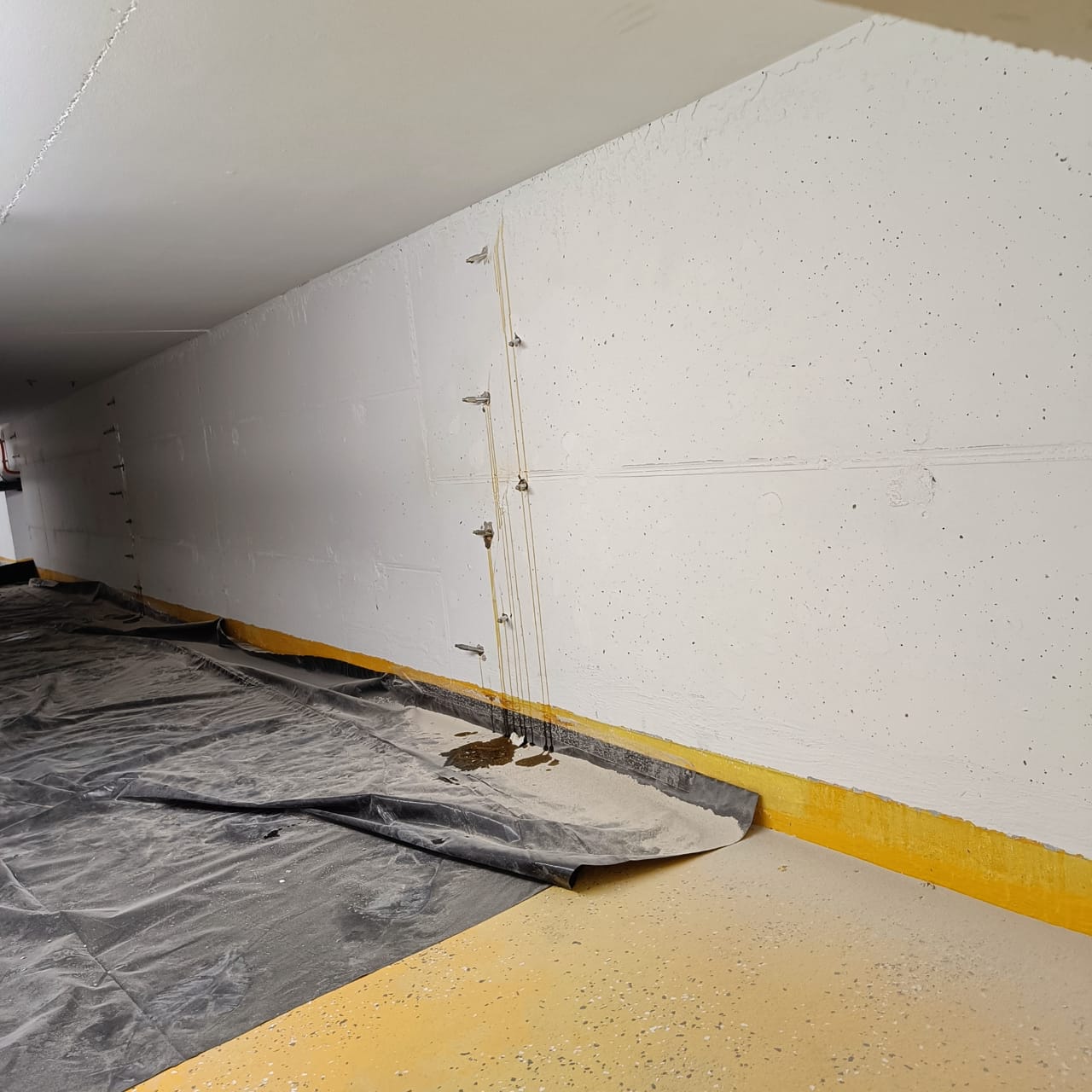 Решение: Герметизация трещин в чаше бассейна и ремонт трещин методом инъектирования в наружних стенах и опорах бассейна