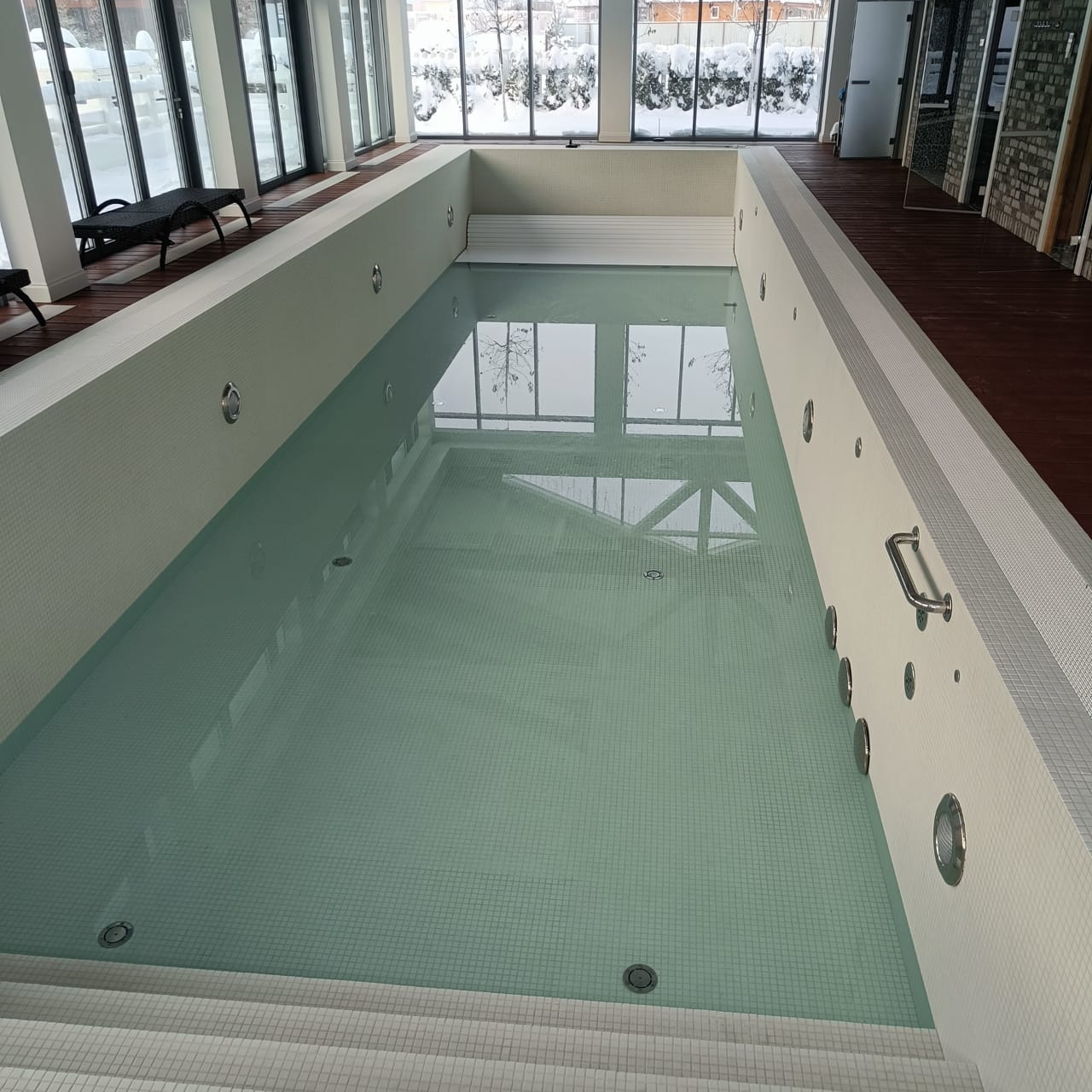 Проблема: Трещины в чаше бассейна (40 метров погонных, из них - 12м.п. днище чаши бассейна, 8м.п. ноги чаши и 20мп микротрещины по всем стенам техпомещения).