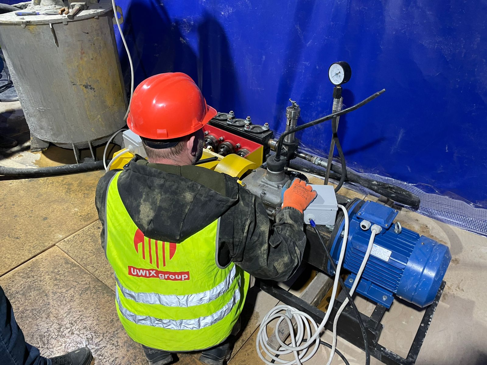 Работаем из подвала в стеснённых условиях на оборудовании разработанном и собранном на заказ для этого объекта.