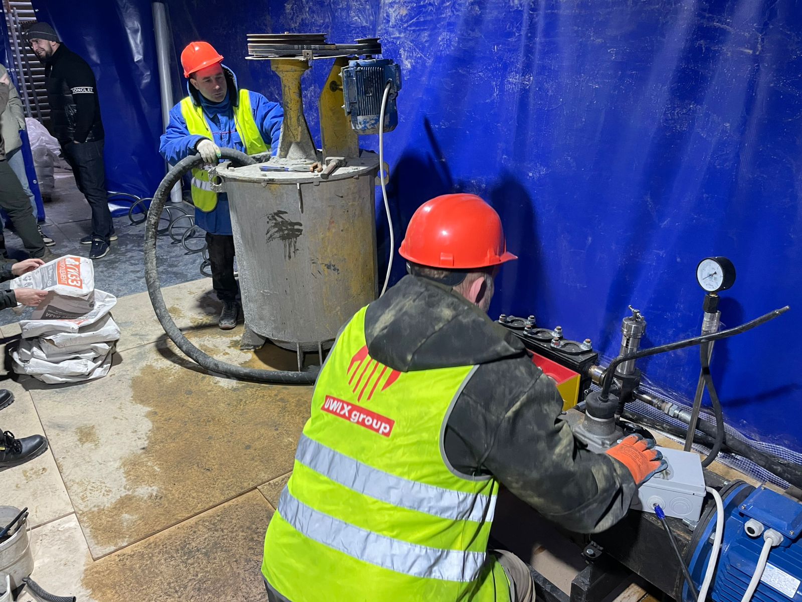 Наша задача зацементировать пустоты и поры известняка, выдавив оттуда воду и придать дополнительную несущую способность.