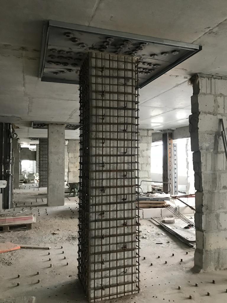 Проблема: Здание долгострой, строительство начинал один застройщик, потом достраивал ПИК. По результатам обследования, в том числе аппаратом Хилти из-за длительного простоя и промерзания жб конструкции подверглись эрозии и стали терять требуемые Гост характеристики.