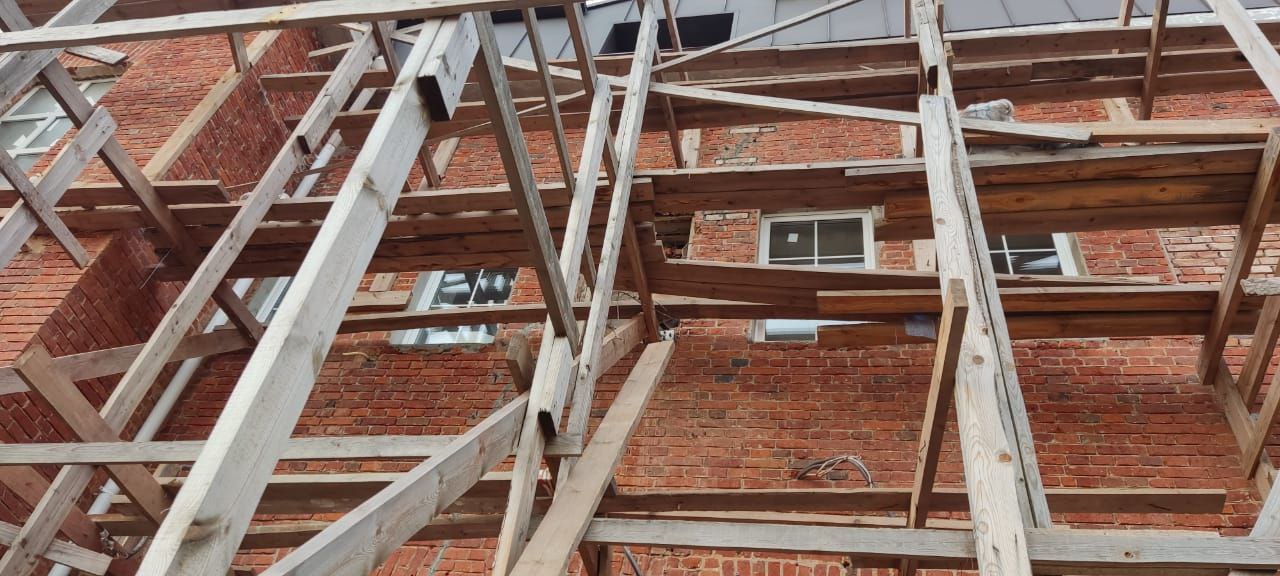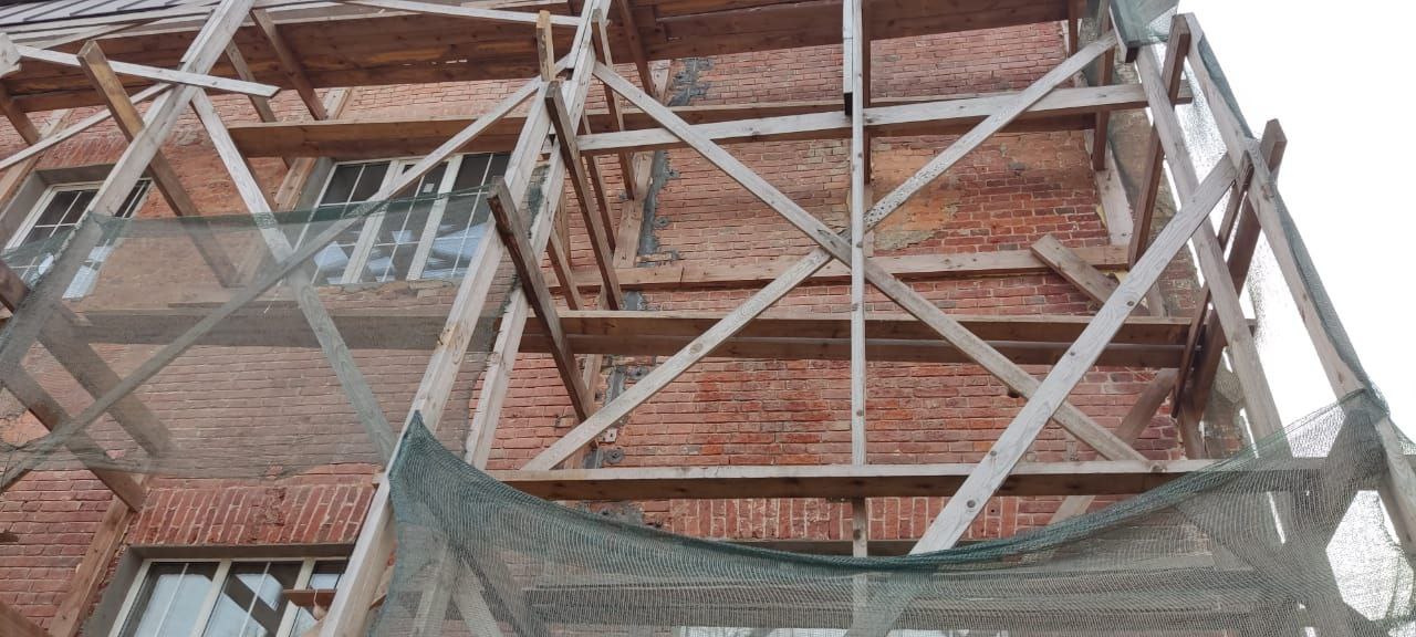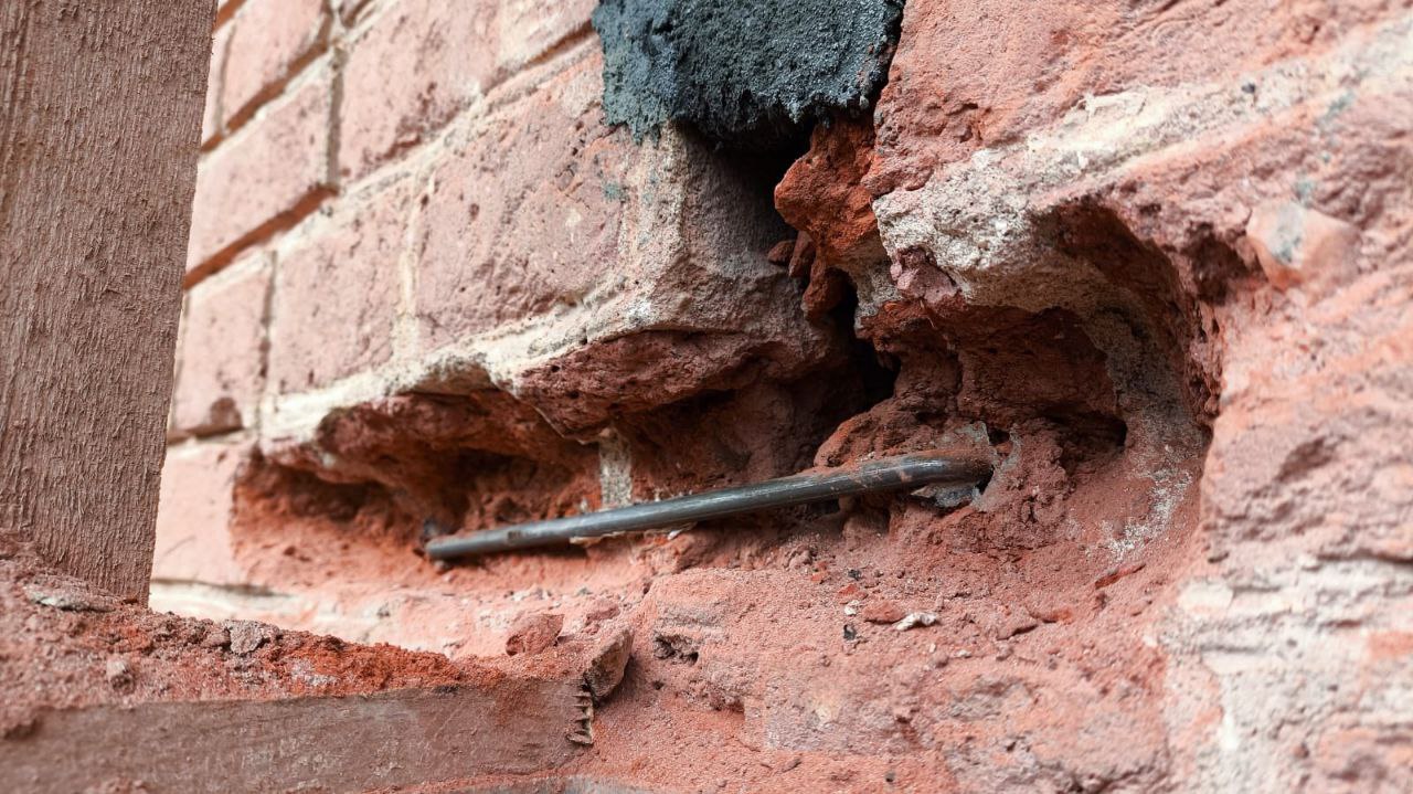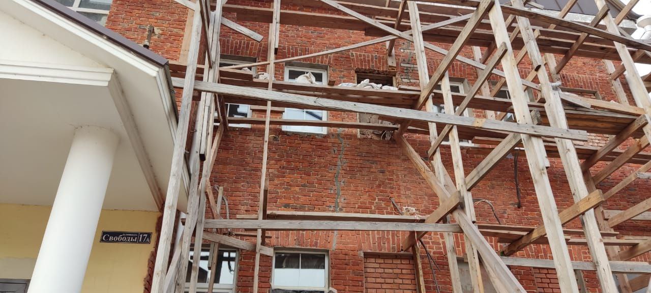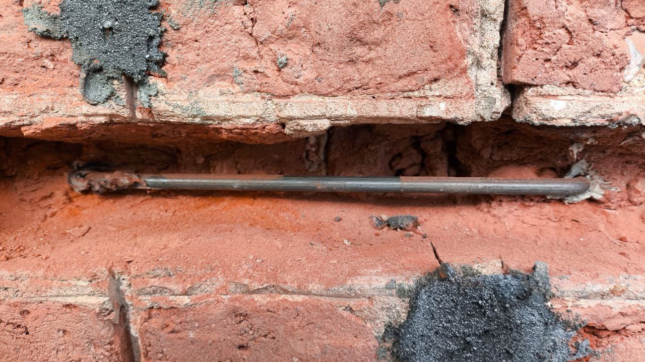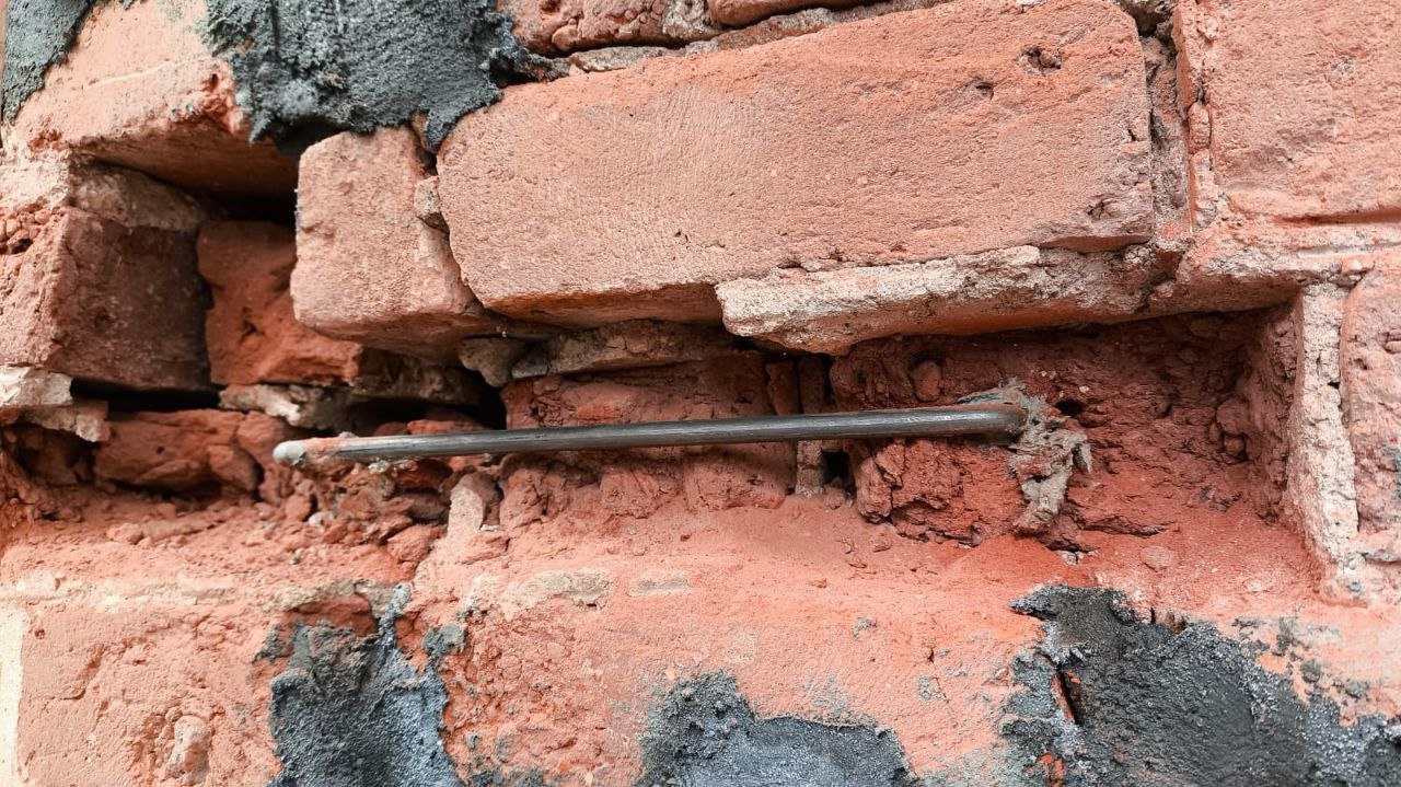 Выполненная работа: Ремонт трещин, укрепление кирпичной кладки, бурение, установка аркерной проволоки, зачеканка, прокачка трещин микроцементом.