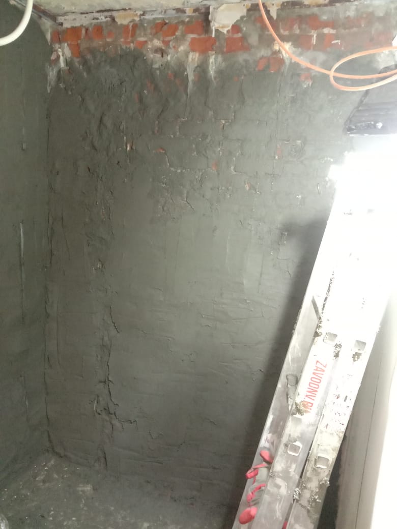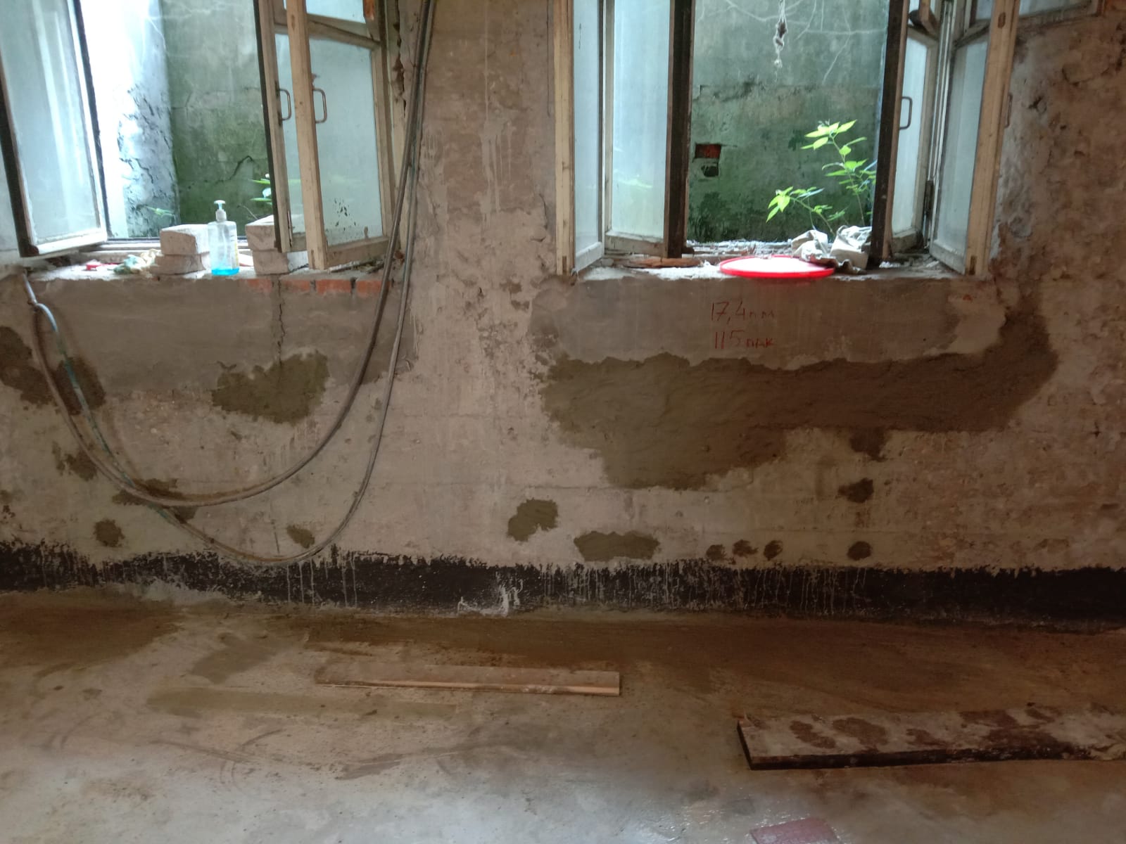 Решение: Усиление, гидроизоляция кладки инъектированием, обмазочная гидроизоляция, штукатурные и отделочные работы.