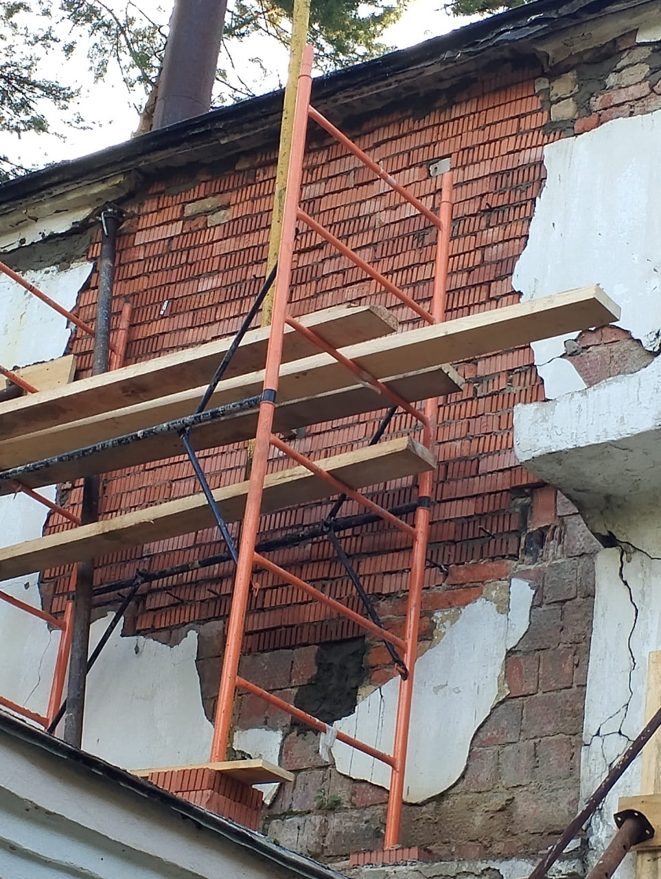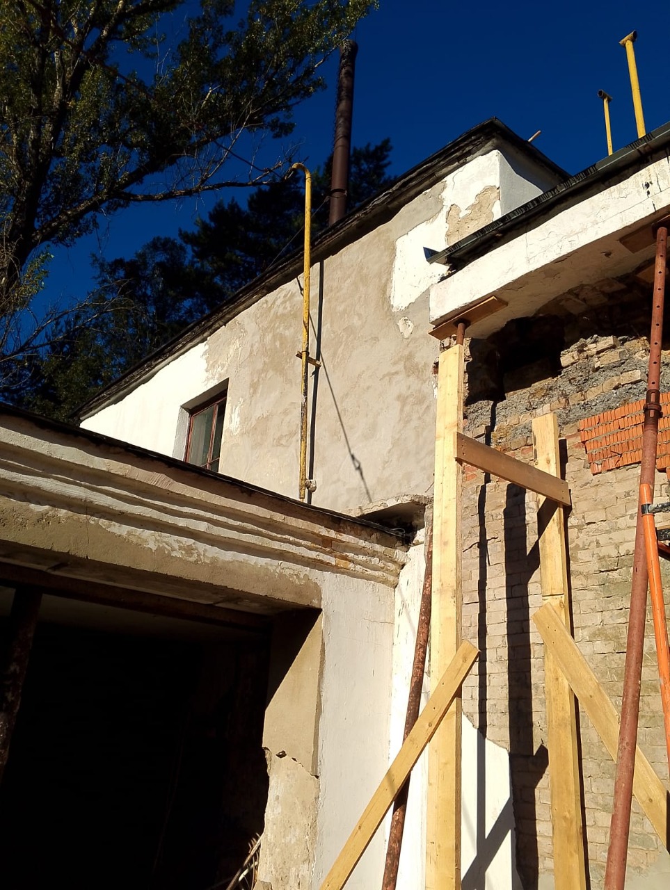 Выполненная работа: Реставрация зданий и сооружений санатория. Усиление, восстановление кирпичной кладки. Восстановление опалубки. Усиление стен. Отделочные работы. Ремонт и гидроизоляция кровли