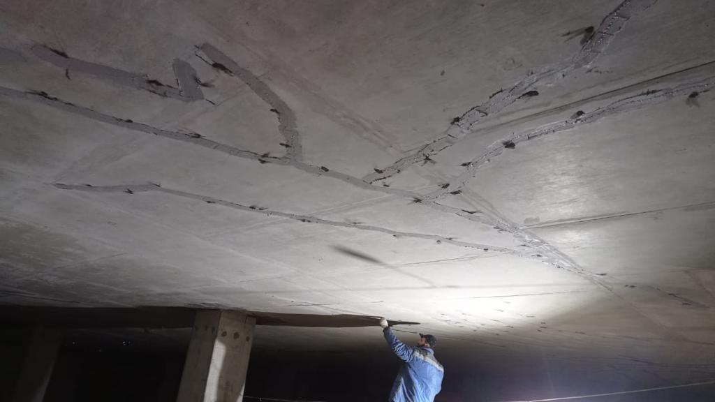 Решение: Усиление плит перекрытий с помощью иньнктирования смолой для структурной склейки бетона. Объем 1500 м.п.